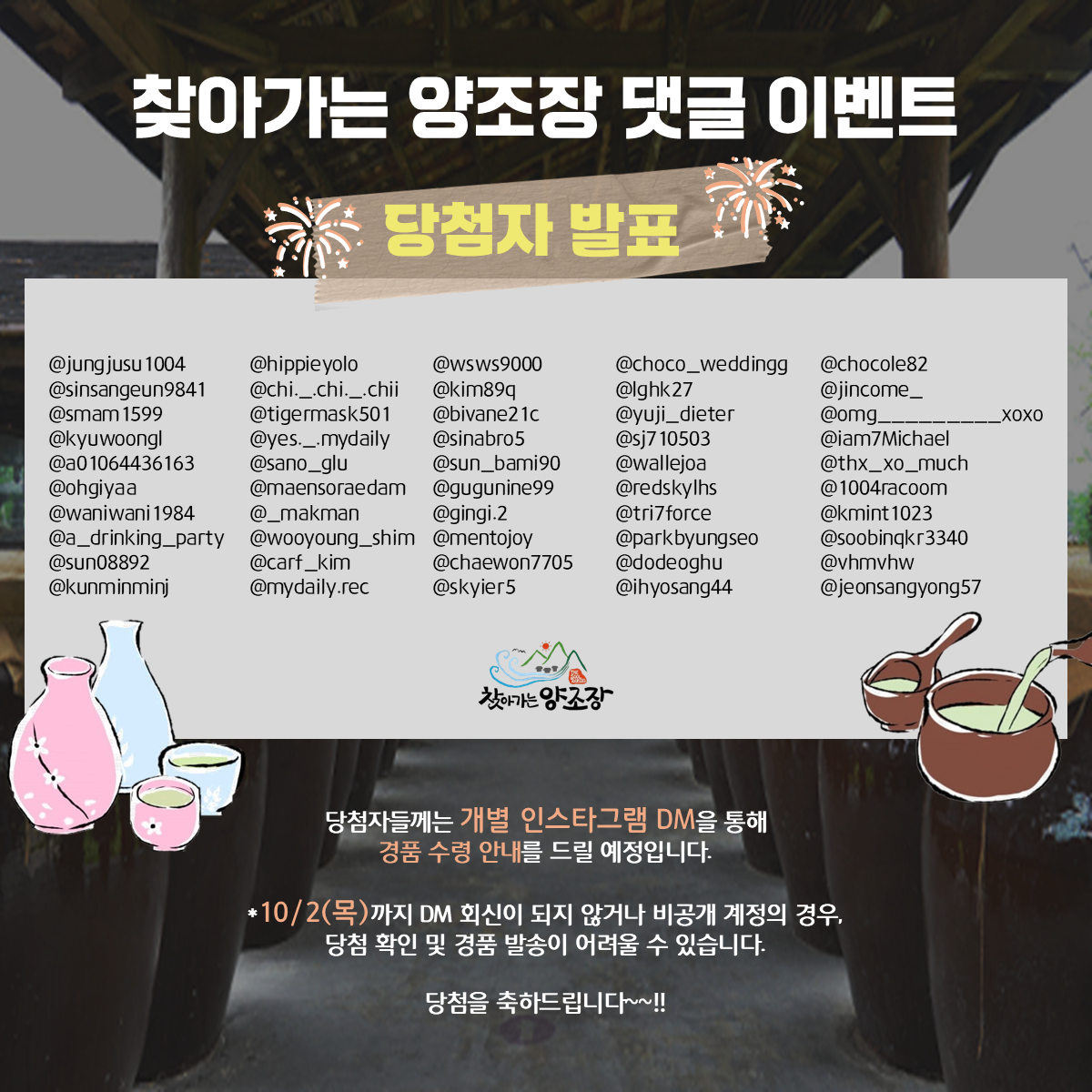 - 찾아가는 양조장 인스타그램 댓글 이벤트 당첨자 발표