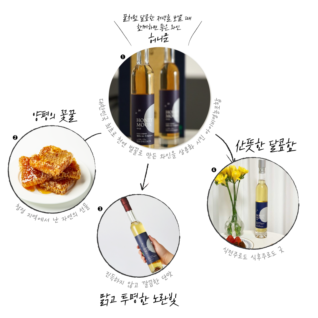 차갑게 해서 식전주로 마시거나 달콤한 디저트와 함께 식후주로 마셔도 좋은 허니문입니다. 여러분도 허니문과 함께 달콤한 저녁을 보내보세요!