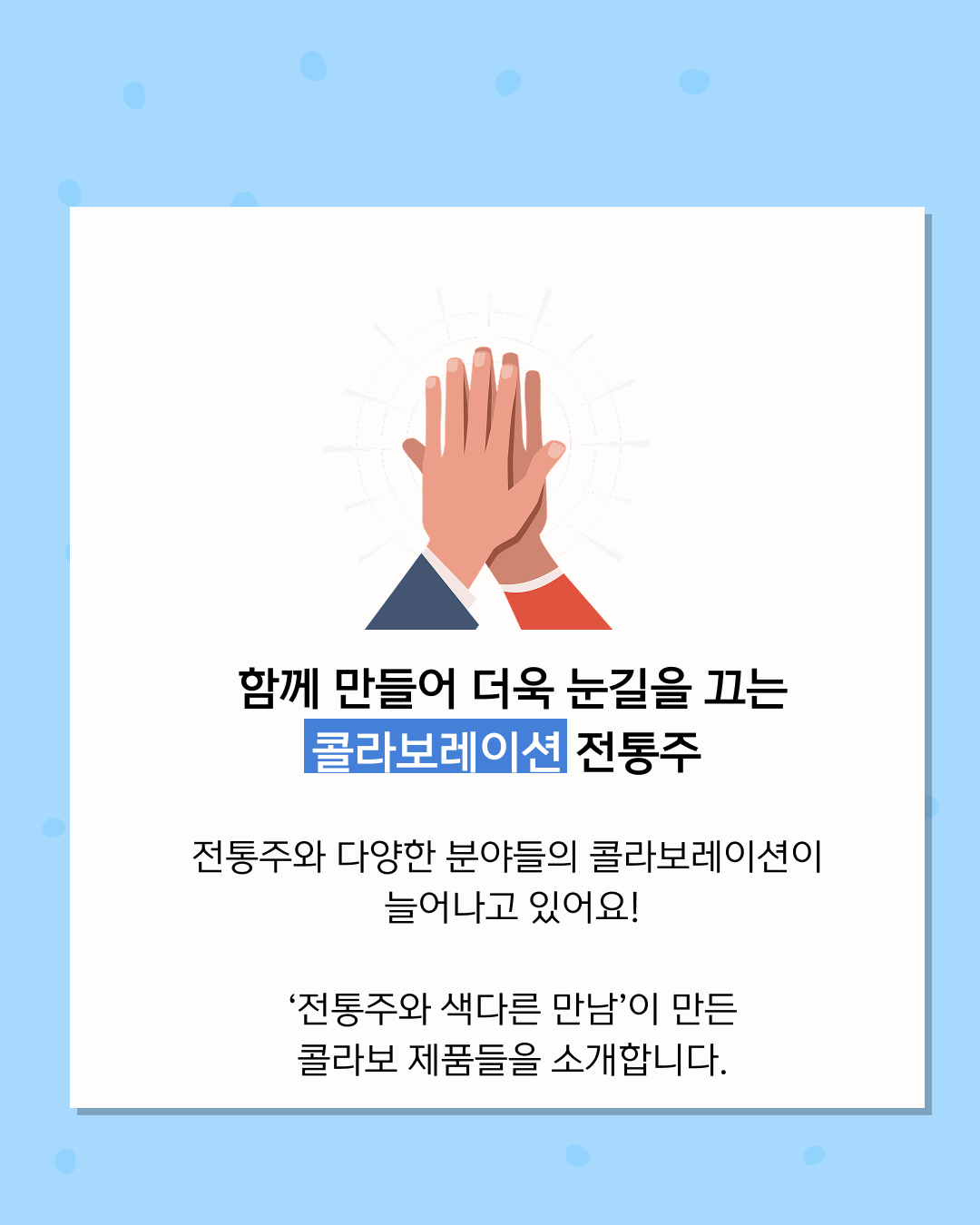 오늘은 다양한 협업을 통해 만들어진 전통주 제품들을 살펴보았습니다.