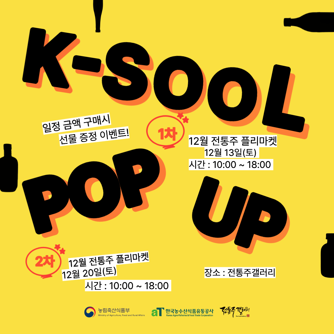 전통주갤러리에서 12월 13일(토), 12월 20일(토) 두 번의 플리마켓이 열립니다!